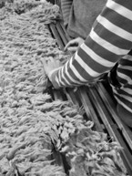 Triée une deuxième fois, notre laine est lavée, peignée puis filée, pour devenir un fil d’une incomparable douceur .
